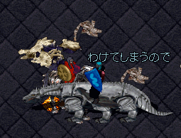 ここでDOOM(ドゥーム)を知らない人はいないと思いますが、簡単に説明しますと、マラスにあるダンジョンで金骸骨を1個使用します(パーティで1個)。DOOMレベル2は対岸とよく言われます。金骸骨をwクリックして桟橋の鐘を叩くと船頭が現れ、その桟橋に乗ると対岸へ渡してくれるようです。