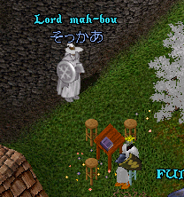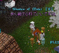 さて最初のおしゃべりした人はShadow of Makiさん。実は私この方とヤングあけに狩りしたことがあるのです。このまきさん、マーケットのスタッフですが、過去にブリテインでまったりしたのをよくお見かけしました。そんな話をしてました。