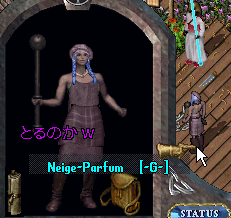 メインの噴水前でお友達の行商手伝いをしているおるさんを発見。