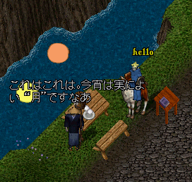 hokutoのブリの月見。傘をかぶったNPCがいましたので、お話ししてきましたよ。