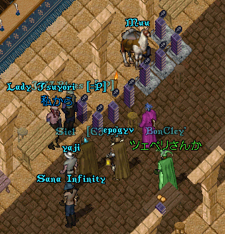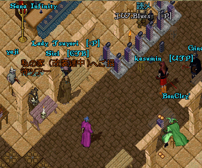 そっからママス&パパスとなり、非常に古い音楽ネタになっていきました。その後でパソコンネタになり、バックパックの話からiPODの話になりました。そのあとでUO9周年パックの話が出てどこで購入するかという話で盛り上がりました(違ったらごめん)。