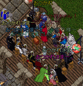 何やら死体の山を気づいたり、いろいろパフォーマンスで大変でしたね。できたログインページを見ましたら私もこそっと写っていました(真ん中辺にいる赤いエルフフードのキャラですね)。
