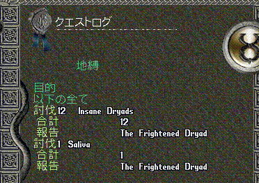 このNPCのクエストを受け、dryadを12体、そしてsalvaというストーンハーピーを倒すと終了だそうです。途中いろいろ手強いモンスも出ますが、攻略のコツはあまりダンジョンの奥まで行かず、順番にポイントを周るのだそうです。
