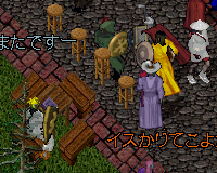 開始早々、3人もお客様がいらっしゃいました!わお〜。それぞれ天ぷら粉、強化盾、マジショー弓をお買いあげいただきました。売り上げここまでで50kです。ありがとさんでした^^