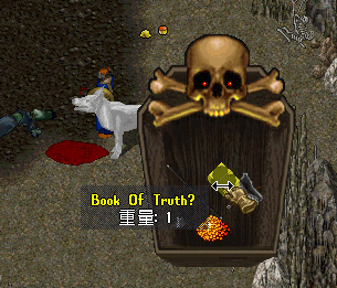 狩りしてましたら、ぴろりろ~ん♪という特殊効果音によって棺桶に本が出ました(UOの設定を効果音ありにして置いてくださいね。じゃないと意味無いですよ~)。