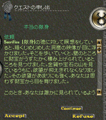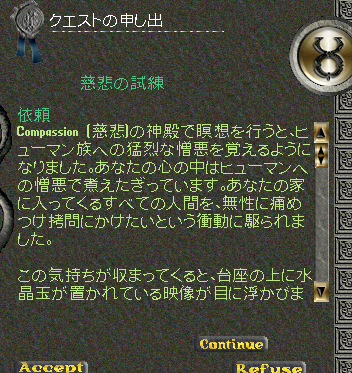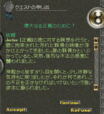 ①まずは正義の神殿に行き、マントラbehを唱えます。するとクエスト画面に入ります。