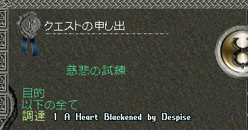 この心臓は、デスパイズに湧くオーガロードを倒していると、たまにラージオーガロードlarge ogre lord(以下LOL)が湧くのでそれを倒すと棺桶の中にアイテムが入っています。黒っぽい心臓です。LOLはなかなか湧かないので少し根気がいります。複数で倒していればそうでもありませんが…。このLOLの湧く場所がランダムでして、OLの湧くポイントがdespiseには3カ所あるのですが、その辺にランダムで湧くようです。