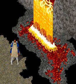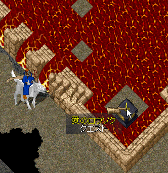 画像の対角線上(北東)からスタートできます。溶岩に触るとダメージを受けスタートにもどってしまいます。溶岩の上に土のような床が見えますね。これが移動しますのでうまく乗って、目的の愛のロウソクまで行きます。愛のロウソクの手前まで行きますとクエスト画面が開き、受けると、白いロウソクの炎が愛のロウソクに移動しクエストが終了します。