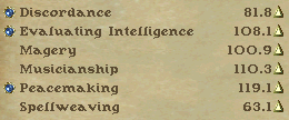 ちなみにレベル6に出るモンスのバードスキル難度は、古代が131.4 黒閣下が117.4 血エレが94.9 毒エレが105.1 タイタンが93.6です。この数字よりスキルが−25以下なら、沈静や扇動(不調和も)は成功しないです(楽器は当然GM以上)。