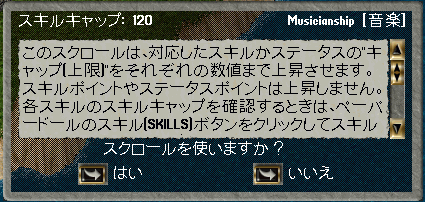 今日はたまたま仕事で夜21時頃ログイン。GGS終了後、ムイナルで献身贖い1回とお金稼ぎで1時間ぐらいあちこち行きました。そのおかげで、今日魔法が0.5上がりましてようやくGMです。しかしまだEVとかうまくいかないのでこれから少しずつあげます。とうとうこんなの使っちゃいました!