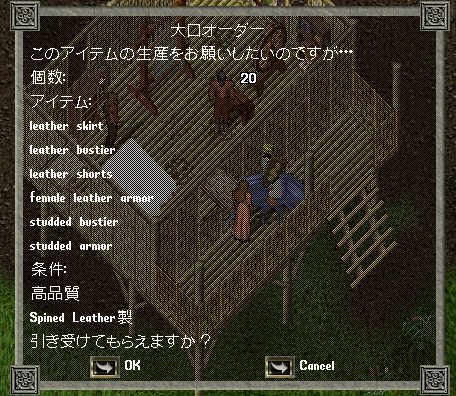 ちなみに裁縫スキルが70未満の場合、小口注文DEEDのみ、高品質の注文は来ない・布、ノーマル革の注文しか来ないそうです。70以上なら大口も出る可能性があり、高品質、革の注文ももらえるとのことです。