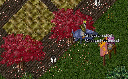 まずこんな感じ。いきなり真っ赤な桜に出迎えられ、フリーの宴会場のようです。