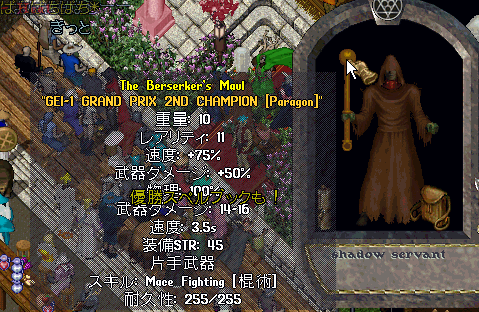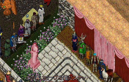 「あの~昔、慈悲神殿の近くで図書館やってましたか?」と聞くと「そうです~」という答え。ばっちりでした。かつて私はその近くの砂漠に住んでまして、たまに遊びに行ってました。今の家と酒場はブリを越えた堀のすぐ近くにあるようです。今度出かけてみたいですね。昔からある有名な酒場の店長さんですね。