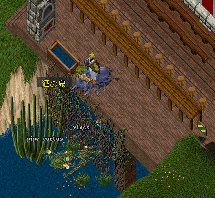 酒場の下は、(前回は石垣仕様でしたが、)今回は蔓性植物が繁茂しています。