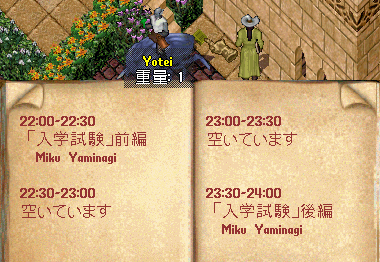 ステージではあらかじめ「入学試験」というイベントが用意されており、それ以外の時間はまだフリーでした。